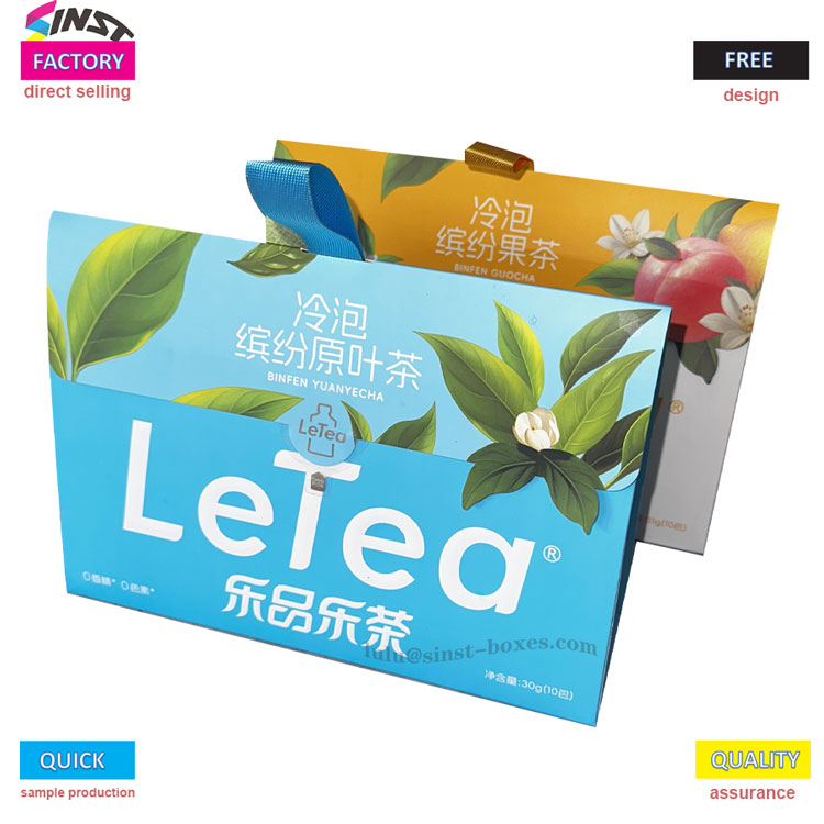 SINST Packaging Company leverer to versioner af lyseblå og gulorange gradientkortæsker med levende farvekombinationer, der ligner sollys. Cold Brew Fruit Tea Card Box har en relief frugttekstur og et guldvedhæng med et bånd i samme farve bundet til toppen. Gyngen kommer med et "sund livsstilsblogger"-filter. Kortæsken er lavet af plantefibermateriale og kan nedbrydes efter at have været nedgravet i jorden i nogle måneder. Miljøbeskyttelse er aldrig blot en mundtlig udtalelse, men en løsning på miljøproblemer fra emballagen til kilden.