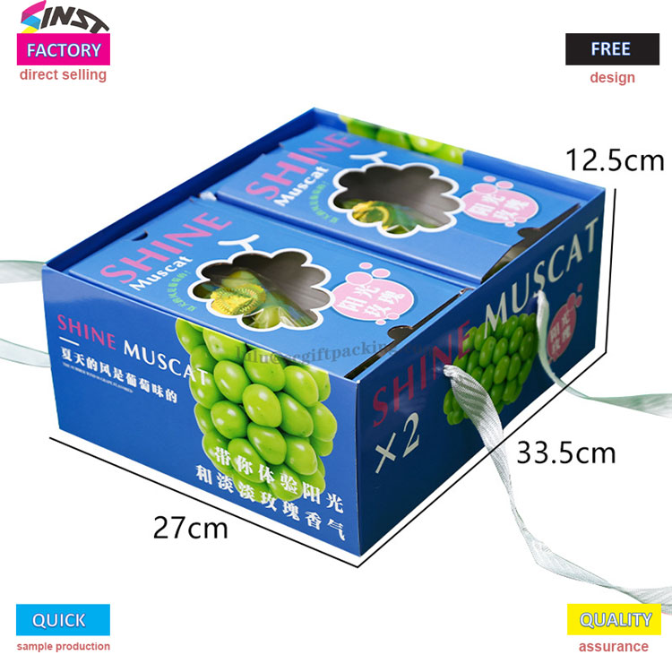 Som kildefabrik for emballage har Sinst lanceret druespecifikke emballagekasser i flere størrelser og farver, der er egnet til e-handel, gave og friske fødevaremarkeder! Hovedlegemet er lavet af forstærket e-flisemateriale (modstandsdygtigt over for pres og fald), der leverer klassiske farveskemaer som grøn, blå og hvid, parret med scenariebaserede slogans som "Sunshine Rose" og "Sommervind er druesmag". Det gennemsigtige vindue/håndholdte remdesign viser intuitivt friskheden af druer, hvilket gør det til et bærbart og iøjnefaldende "alsidigt valg" til drue-gaveæskeemballage!