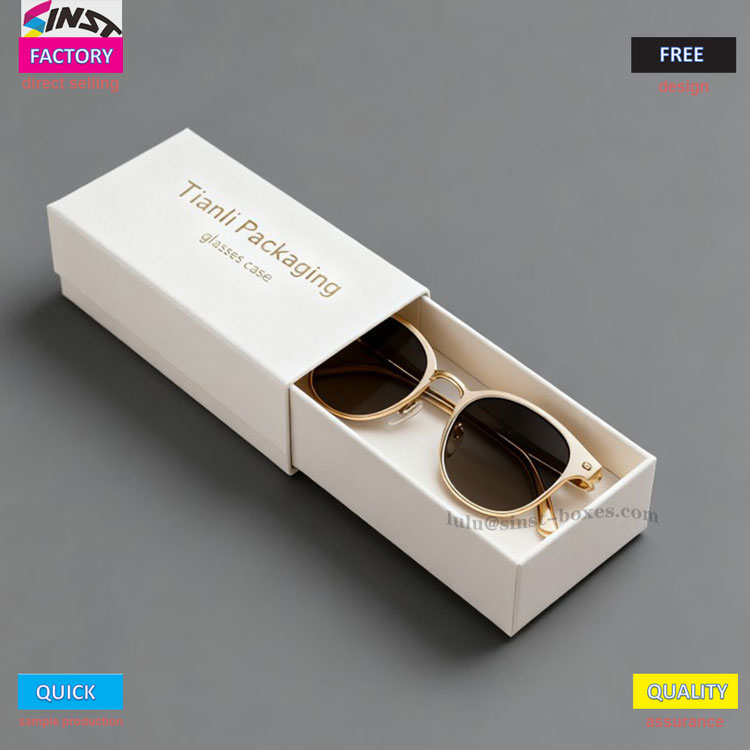 Som et mærke brilleetui føles den varme stempling tekst på låget og kroppen af etuiet struktureret, hvilket adskiller det fra andre almindelige brilleopbevaringsetuier på et øjeblik. Glasses gaveæskes alsidighed er mere fremtrædende: det er en almindelig glasopbevaringsboks til daglig brug, med pænt arrangerede skuffer; Når du giver gaver til kunder eller venner, forvandles den gyldne og hvide emballage i forretningsstil øjeblikkeligt til en stilfuld gavebrilleetui; Hvis du vil være mere eksklusiv, kan du også finde en fabrik til at tilpasse og tilføje mærkelogoet eller velsignelsesbeskeden til boksens krop, opgradere den til en unik tilpasset brilleetui - den indeholder ikke kun briller, men er også opmærksom på modtageren.
