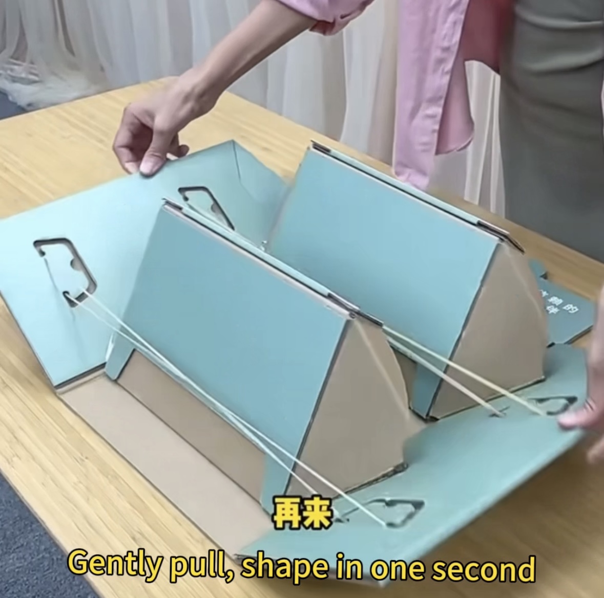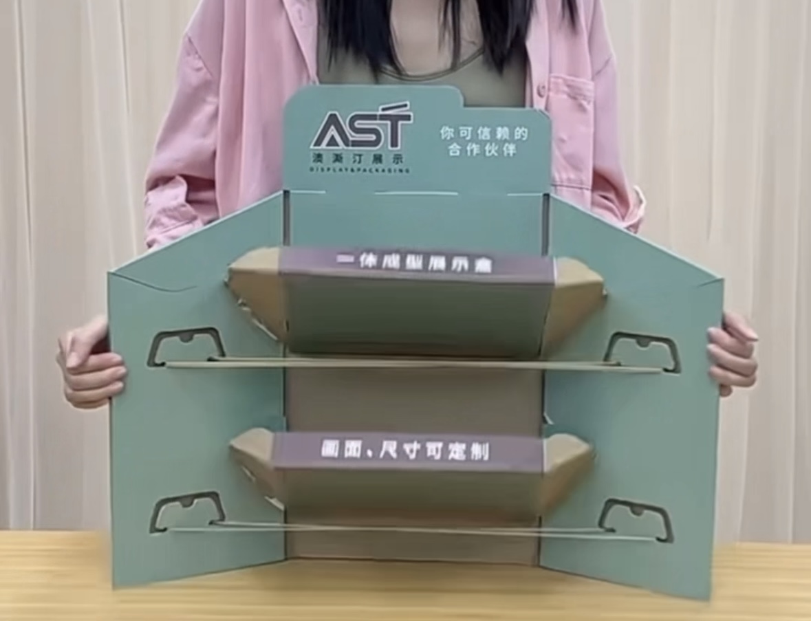 For nylig er et desktop-pap-stillestativ i ét stykke, der kaldes "One Pull, One Display", roligt blevet populært. Med sit minimalistiske design og praktiske funktioner er det blevet et populært valg for små og mikrohandlere, opbevaring af hjemmet og markedsboder. Dette produkt er lavet af pap som kernemateriale, og gennem smart strukturelt design opnår det en praktisk oplevelse af at "udfolde og bruge, frigive og trække sig tilbage" og er kendt som "Desktop Space Magician" af brugere.