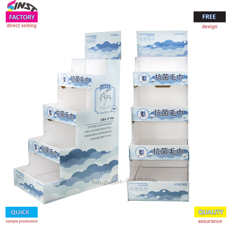 Så længe du vælger SINST PRINTING Håndklæde pap display rack, kan alle problemer let løses. Vi har et professionelt team til at give dig effektive designløsninger, og vi har selvfølgelig også professionelt printudstyr til at fuldføre leveringen inden for den tid, du har angivet. Vi er en kraftfuld fabrik med garanteret leveringstid og kvalitet.